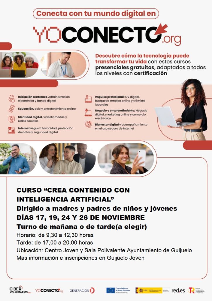 Los días 17, 19, 24 y 26 de nov se llevará a cabo esta formación en la sala Polivalente del Ayuntamiento de Guijuelo y en el Centro Joven.