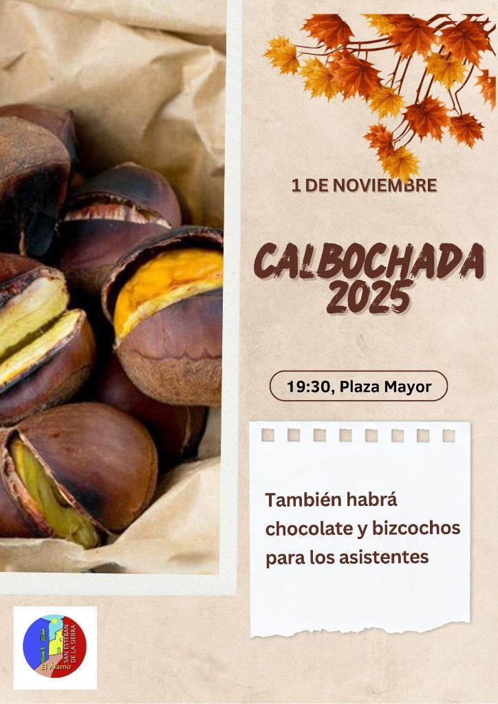 Ahora continuamos con las propuestas para este sábado día 1 de noviembre, en San Esteban de la Sierra habrá calbochada, chocolate y bizcochos, desde las 19:30h.