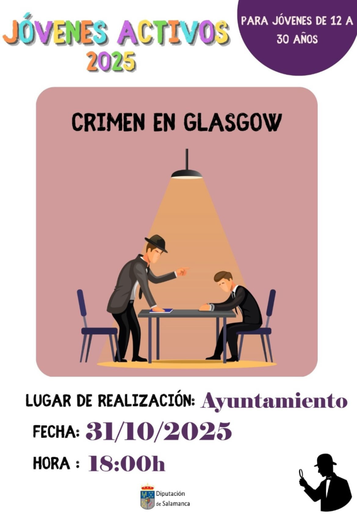Y en Cespedosa los jóvenes participarán en el scape room ‘Crimen en Glasgow’ que se celebrará en el Ayuntamiento desde las 18h.