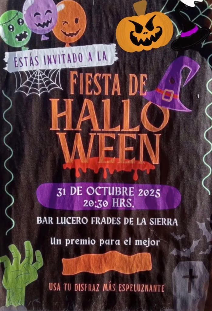En Frades, desde las 20:30h también habrá fiesta de Halloween en el bar Lucero y con premio para el mejor disfraz.