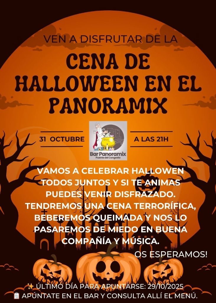Por su parte, Puente del Congosto ha organizado una cena especial Halloween en el bar Panoramix a las 21h con queimada, buena compañía y música.