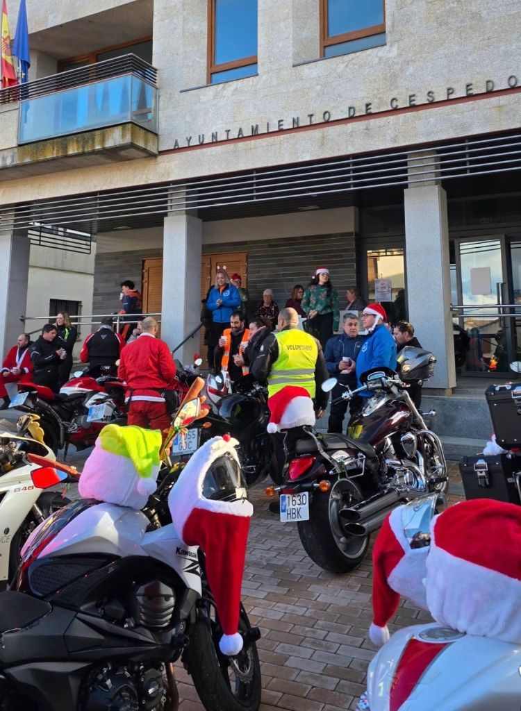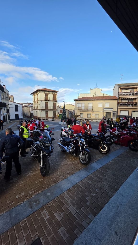 Los moteros disfrazados de Papá Noel recorrieron las calles de Guijuelo y Cespedosa este sábado en la celebración de la tercera edición de la Papanoelada navideña.