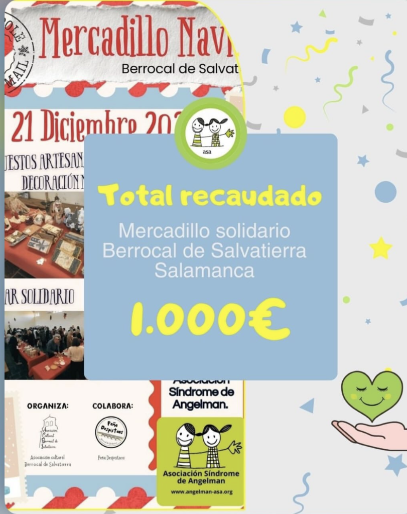 Por su parte, también estos días hemos conocido que el mercadillo navideño de Berrocal ha recaudado 1.000 euros, que se destinarán a la asociación Síndrome de Angelman.