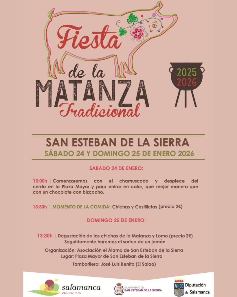 Los días 24 y 25 de enero la localidad honrará al cerdo ibérico con un programa incluido en el Circuito Provincial Matancero de Diputación de Salamanca.