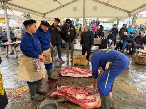 La plaza de Castilla y León de Guijuelo acogió este pasado sábado la celebración de la primera jornada de la 40ª edición de las Jornadas de la Matanza Típica de Guijuelo, dedicada al gremio chacinero.